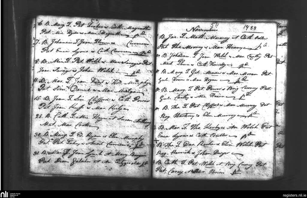 Dungarvan; County of Waterford; Diocese of Waterford and Lismore. Baptisms, Oct. 1788 to Nov. 1788