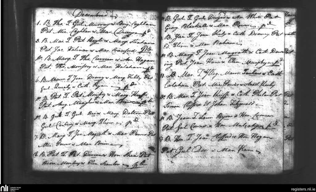 Dungarvan; County of Waterford; Diocese of Waterford and Lismore. Baptisms, Dec. 1788
