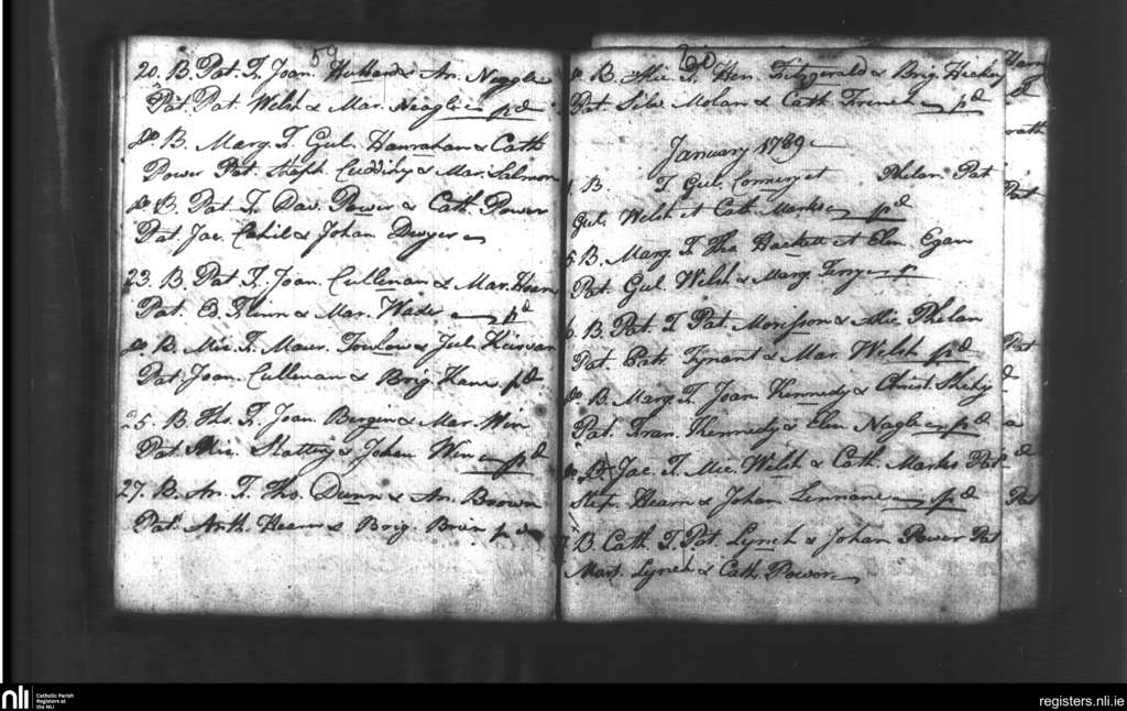 Dungarvan; County of Waterford; Diocese of Waterford and Lismore. Baptisms, Dec. 1788 to Jan. 1789