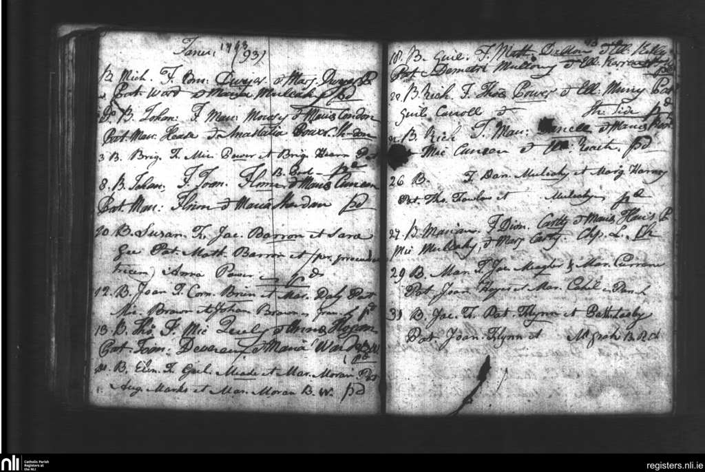 Dungarvan; County of Waterford; Diocese of Waterford and Lismore. Baptisms, Jan. 1793