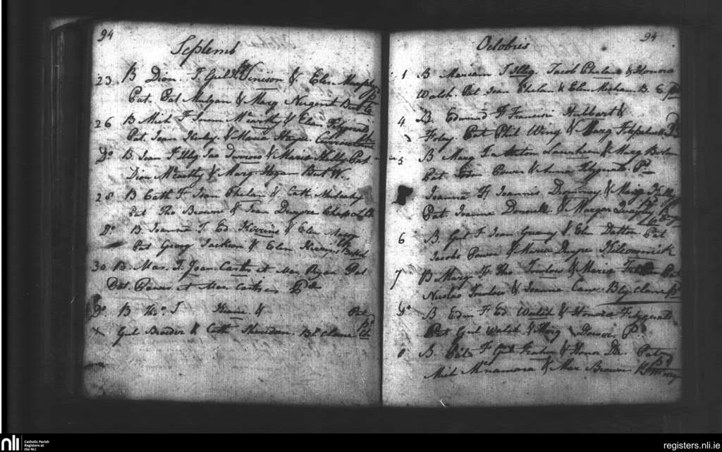 Dungarvan; County of Waterford; Diocese of Waterford and Lismore. Baptisms, Sep. 1794 to Oct. 1794