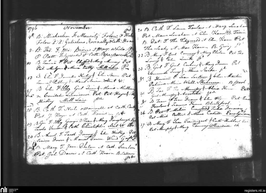 Dungarvan; County of Waterford; Diocese of Waterford and Lismore. Baptisms, Nov. 1796