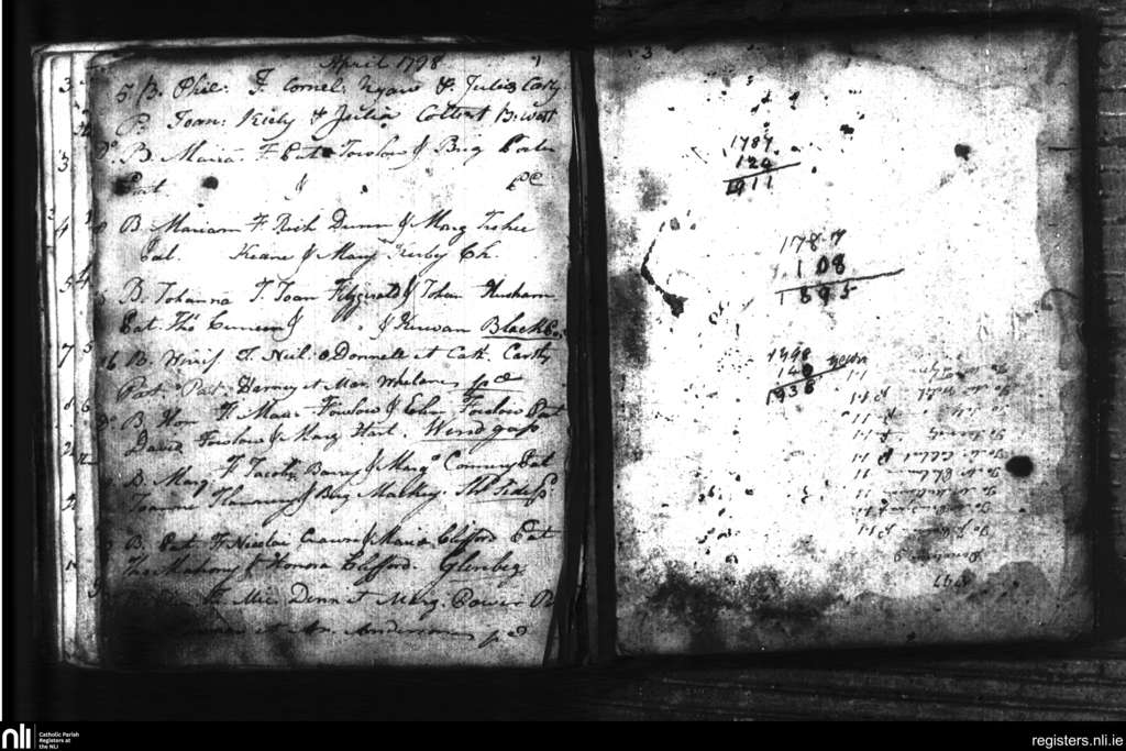 Dungarvan; County of Waterford; Diocese of Waterford and Lismore. Baptisms, Apr. 1798