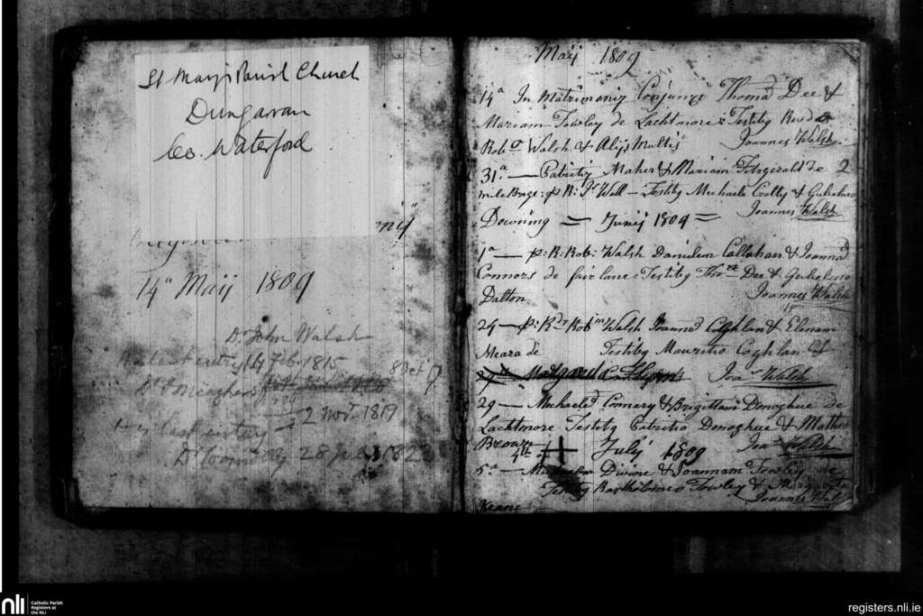 Dungarvan; County of Waterford; Diocese of Waterford and Lismore. Marriages, May 1809 to July 1809