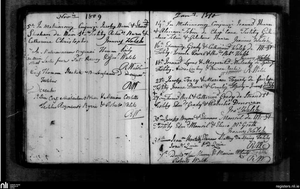 Dungarvan; County of Waterford; Diocese of Waterford and Lismore. Marriages, Nov. 1809 to Jan. 1810