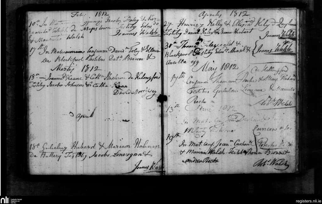 Dungarvan; County of Waterford; Diocese of Waterford and Lismore. Marriages, Feb. 1812 to June 1812