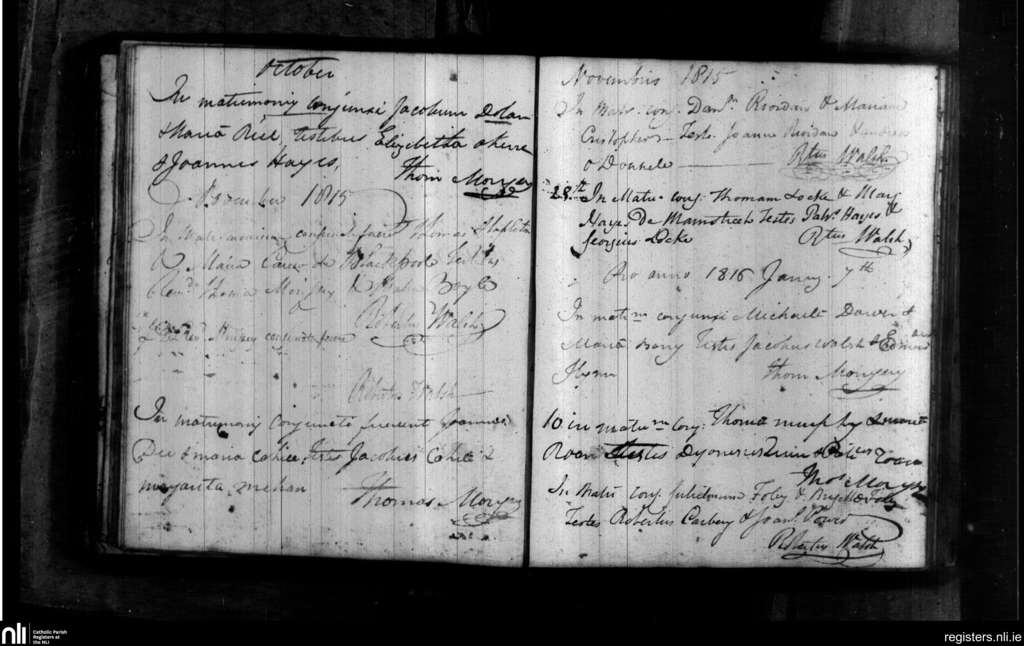 Dungarvan; County of Waterford; Diocese of Waterford and Lismore. Marriages, Oct. 1815 to Jan. 1816