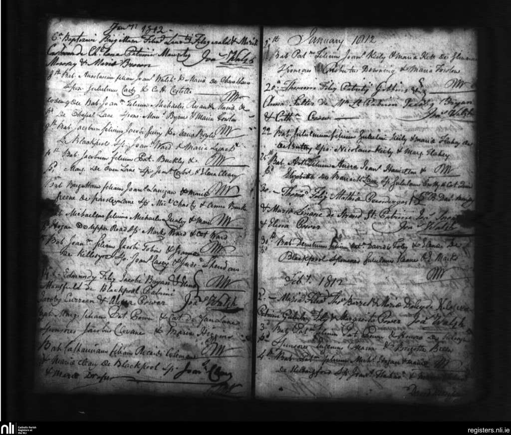 Dungarvan; County of Waterford; Diocese of Waterford and Lismore. Baptisms, Jan. 1812 to Feb. 1812