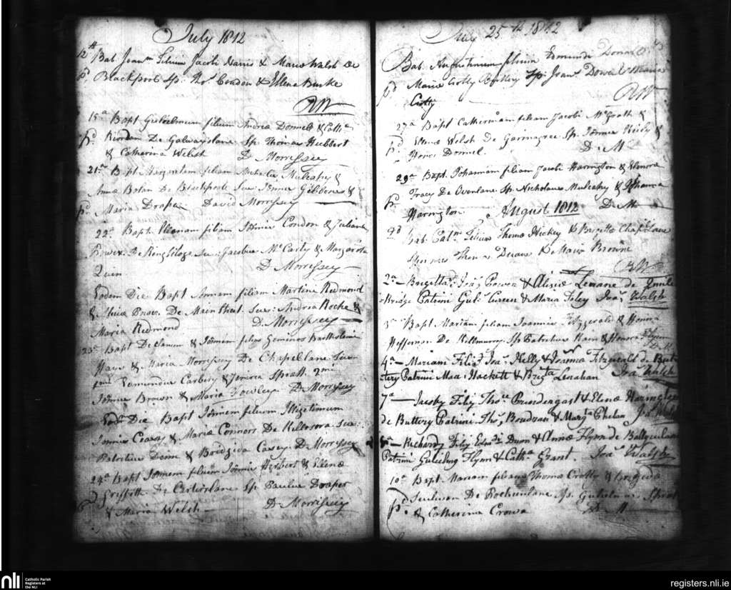 Dungarvan; County of Waterford; Diocese of Waterford and Lismore. Baptisms, July 1812 to Aug. 1812