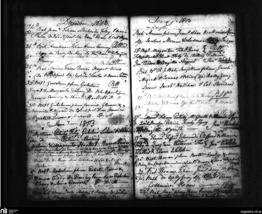 Dungarvan; County of Waterford; Diocese of Waterford and Lismore. Baptisms, Dec. 1812 to Jan. 1813