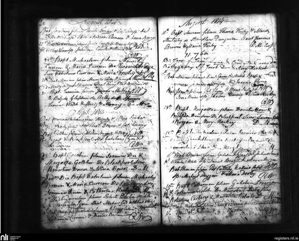 Dungarvan; County of Waterford; Diocese of Waterford and Lismore. Baptisms, Aug. 1814 to Sep. 1814