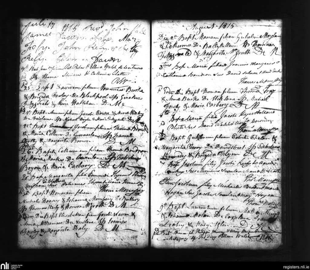 Dungarvan; County of Waterford; Diocese of Waterford and Lismore. Baptisms, July 1815 to Aug. 1815