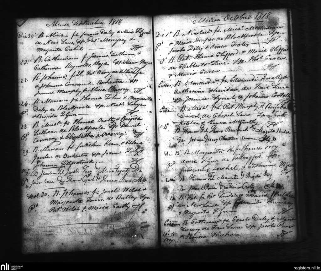Dungarvan; County of Waterford; Diocese of Waterford and Lismore. Baptisms, Sep. 1818 to Oct. 1818