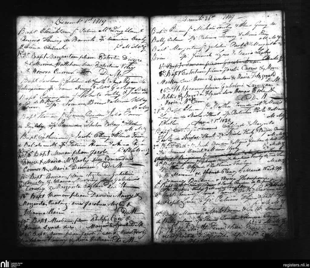 Dungarvan; County of Waterford; Diocese of Waterford and Lismore. Baptisms, Dec. 1819 to Jan. 1820