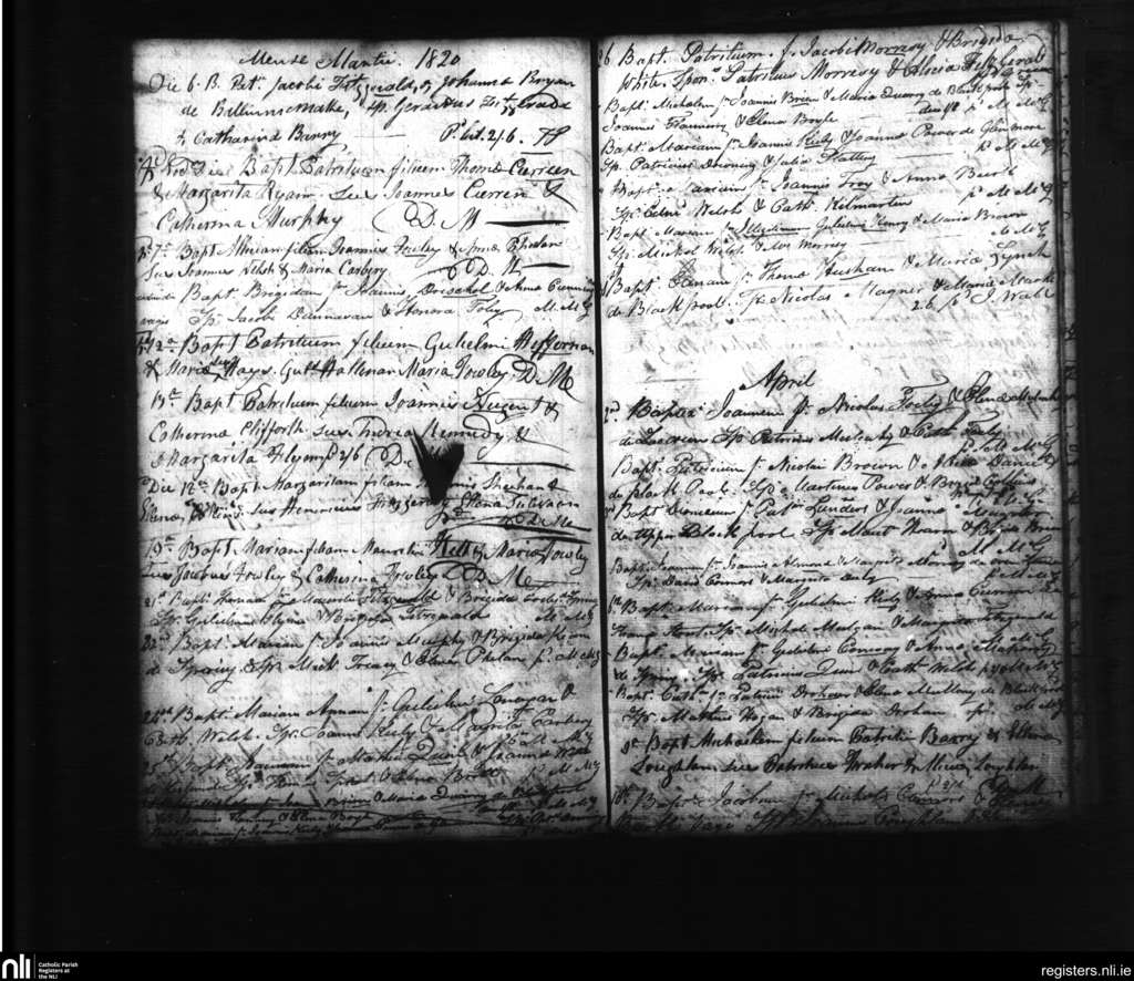 Dungarvan; County of Waterford; Diocese of Waterford and Lismore. Baptisms, Mar. 1820 to Apr. 1820