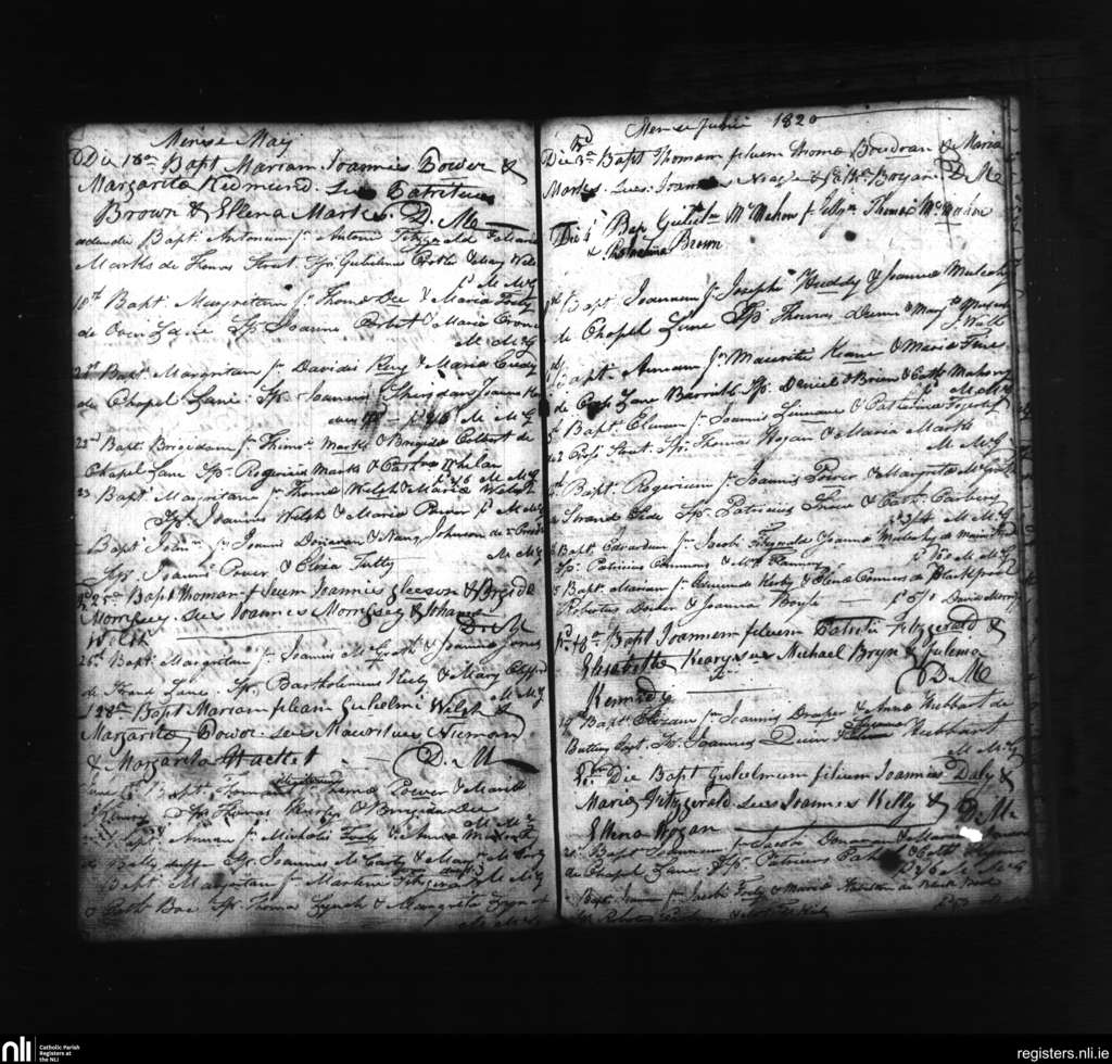 Dungarvan; County of Waterford; Diocese of Waterford and Lismore. Baptisms, May 1820 to June 1820