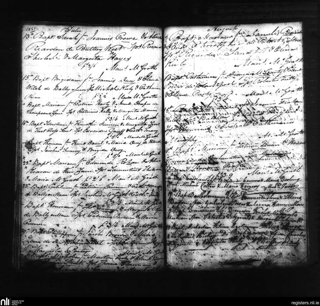 Dungarvan; County of Waterford; Diocese of Waterford and Lismore. Baptisms, July 1821 to Aug. 1821