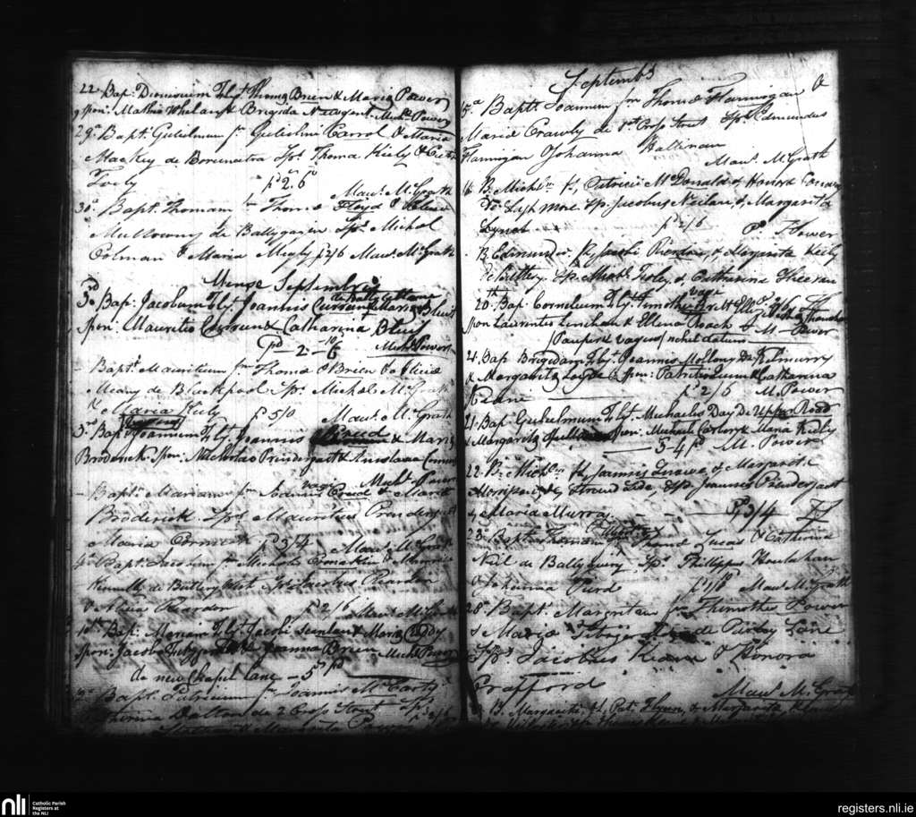 Dungarvan; County of Waterford; Diocese of Waterford and Lismore. Baptisms, Aug. 1821 to Sep. 1821
