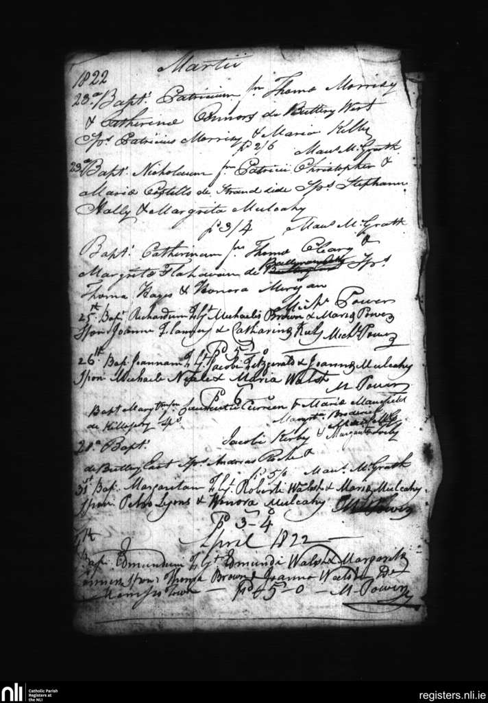 Dungarvan; County of Waterford; Diocese of Waterford and Lismore. Baptisms, Mar. 1822 to Apr. 1822