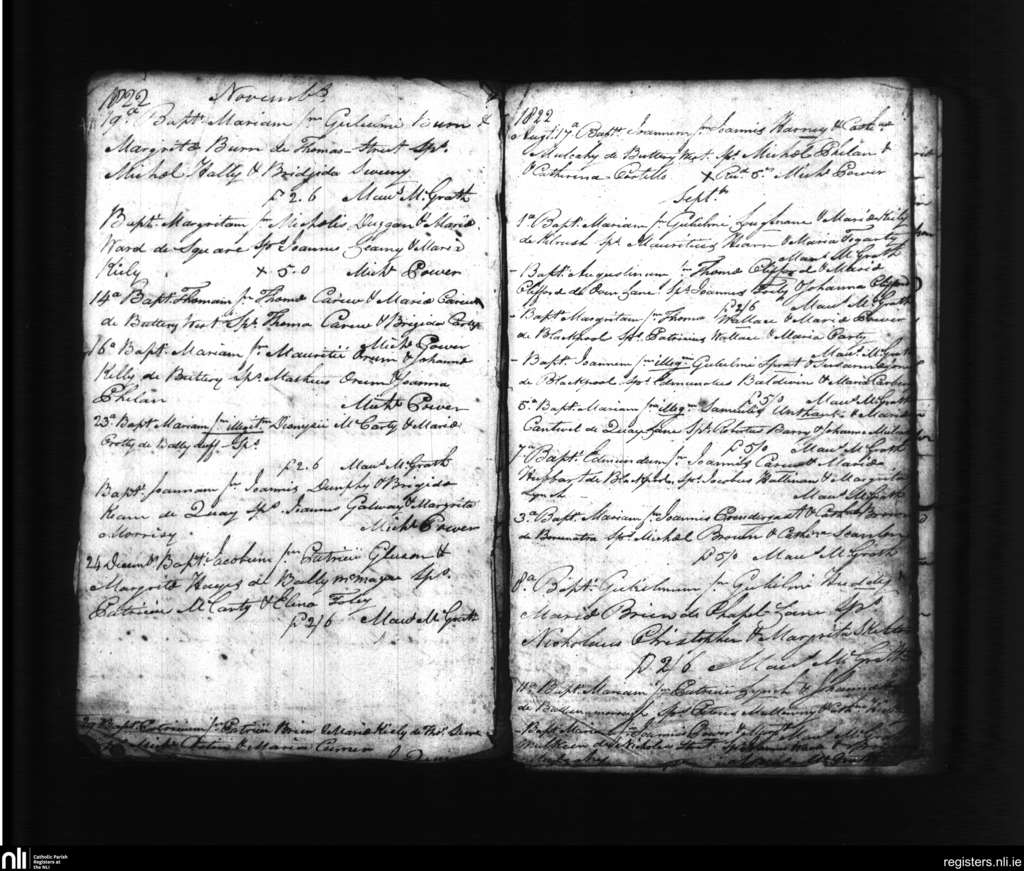 Dungarvan; County of Waterford; Diocese of Waterford and Lismore. Baptisms, Aug. 1822 to Dec. 1822