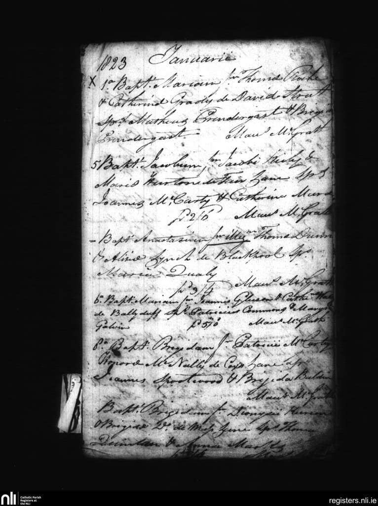 Dungarvan; County of Waterford; Diocese of Waterford and Lismore. Baptisms, Jan. 1823