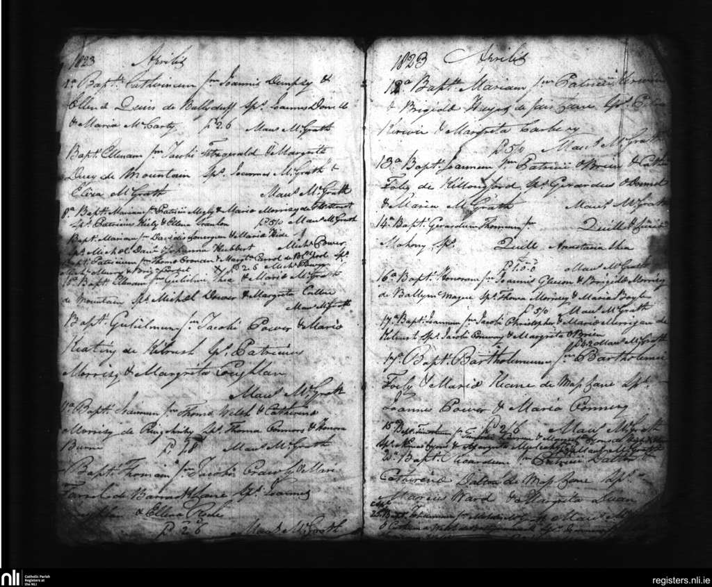 Dungarvan; County of Waterford; Diocese of Waterford and Lismore. Baptisms, Apr. 1823