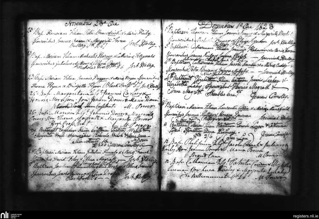 Dungarvan; County of Waterford; Diocese of Waterford and Lismore. Baptisms, Nov. 1823 to Dec. 1823