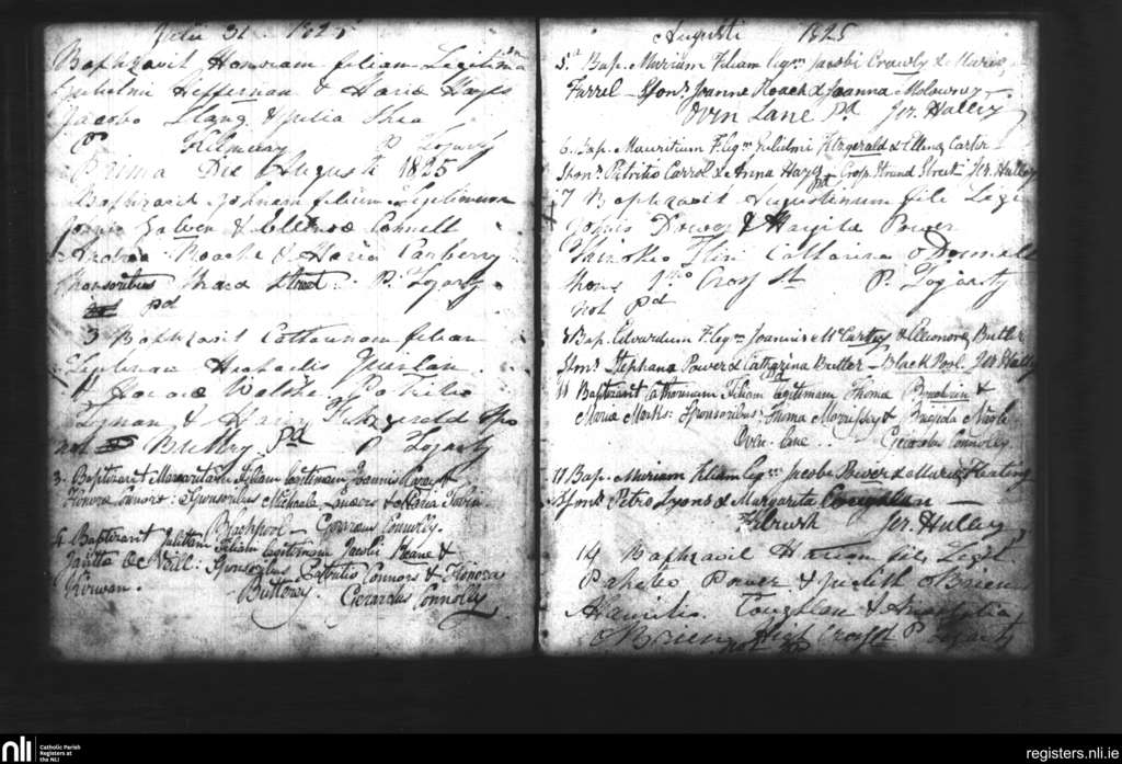 Dungarvan; County of Waterford; Diocese of Waterford and Lismore. Baptisms, July 1825 to Aug. 1825