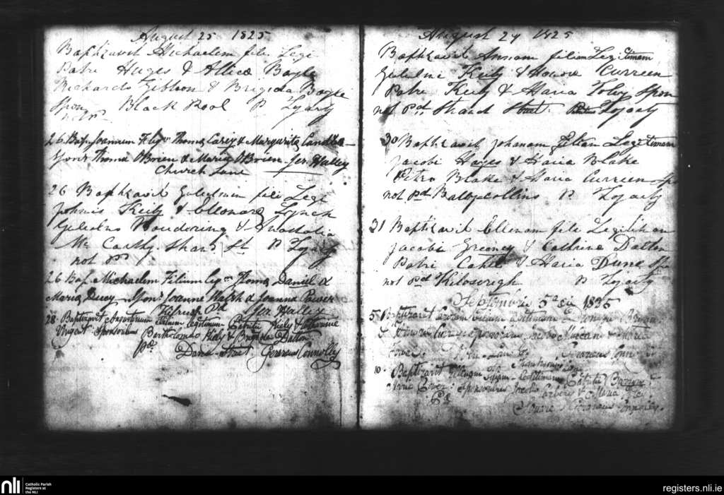 Dungarvan; County of Waterford; Diocese of Waterford and Lismore. Baptisms, Aug. 1825 to Sep. 1825