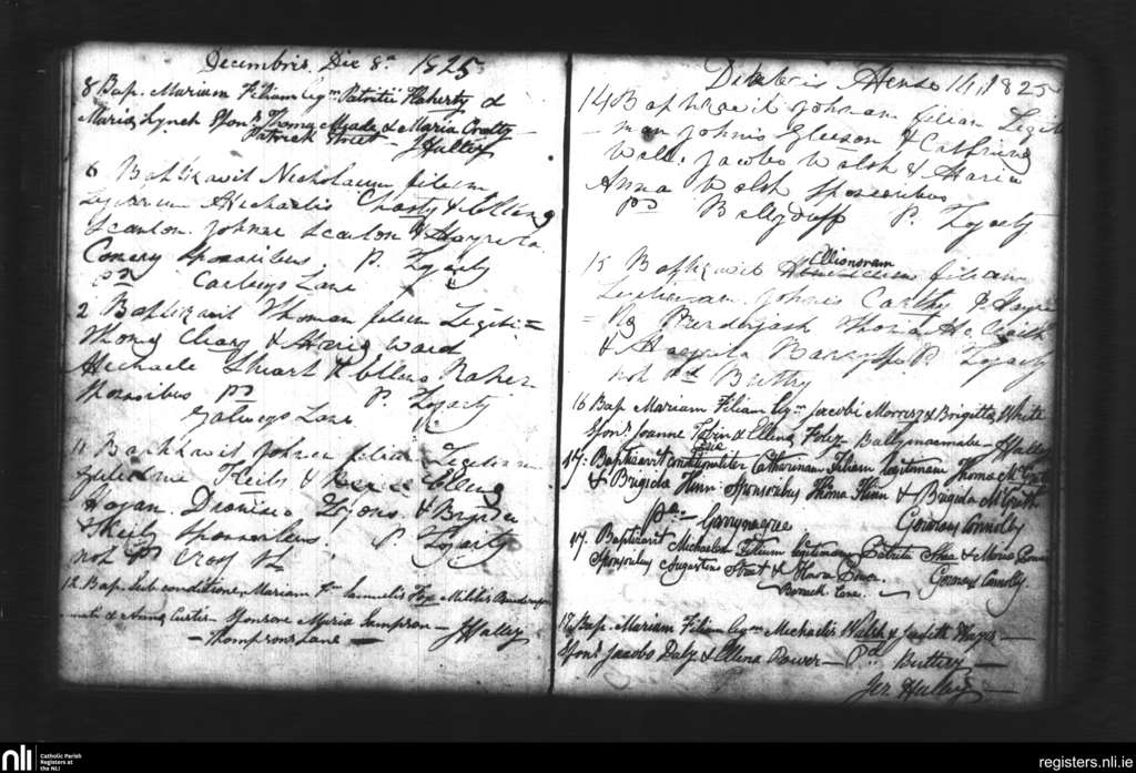 Dungarvan; County of Waterford; Diocese of Waterford and Lismore. Baptisms, Dec. 1825