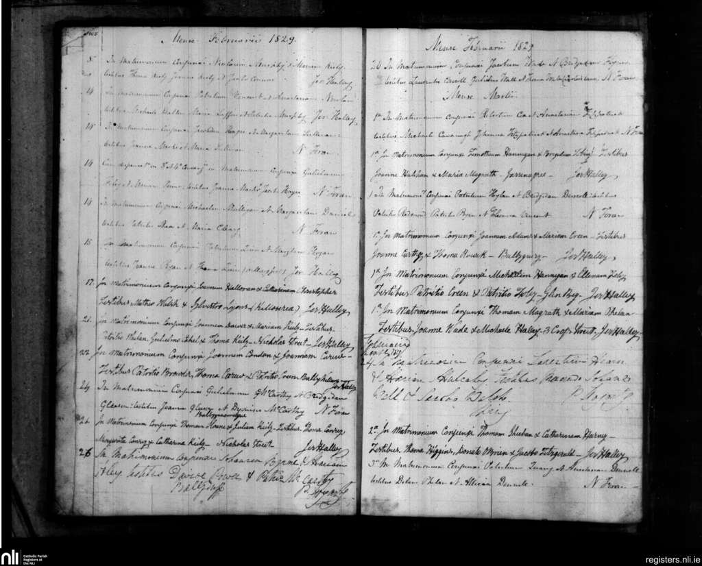 Dungarvan; County of Waterford; Diocese of Waterford and Lismore. Marriages, Feb. 1829 to Mar. 1829