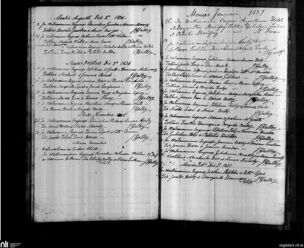 Dungarvan; County of Waterford; Diocese of Waterford and Lismore. Marriages, Aug. 1836 to Feb. 1837