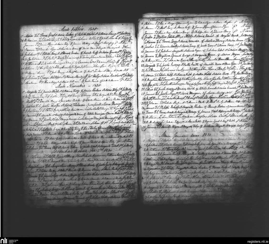 Dungarvan; County of Waterford; Diocese of Waterford and Lismore. Baptisms, Oct. 1830 to Jan. 1831