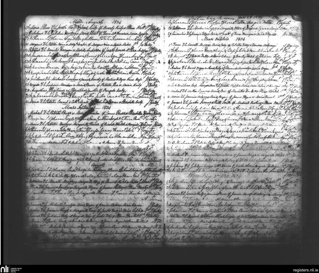 Dungarvan; County of Waterford; Diocese of Waterford and Lismore. Baptisms, Aug. 1834 to Nov. 1834