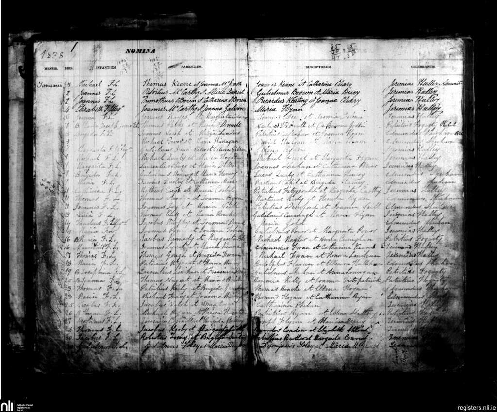 Dungarvan; County of Waterford; Diocese of Waterford and Lismore. Baptisms, Jan. 1838