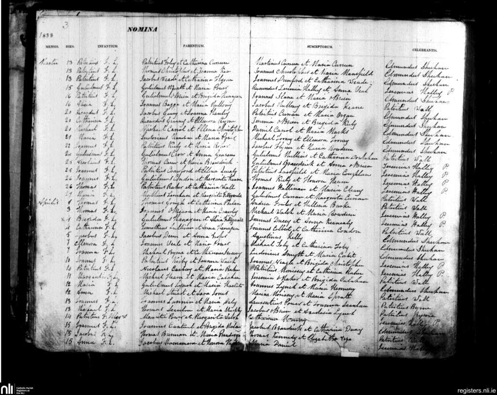Dungarvan; County of Waterford; Diocese of Waterford and Lismore. Baptisms, Mar. 1838 to Apr. 1838
