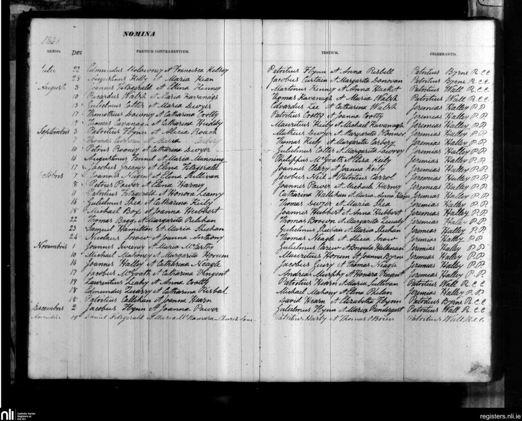 Dungarvan; County of Waterford; Diocese of Waterford and Lismore. Marriages, July 1838 to Dec. 1838