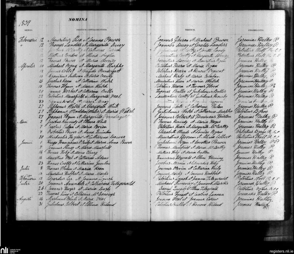 Dungarvan; County of Waterford; Diocese of Waterford and Lismore. Marriages, Feb. 1839 to Aug. 1839