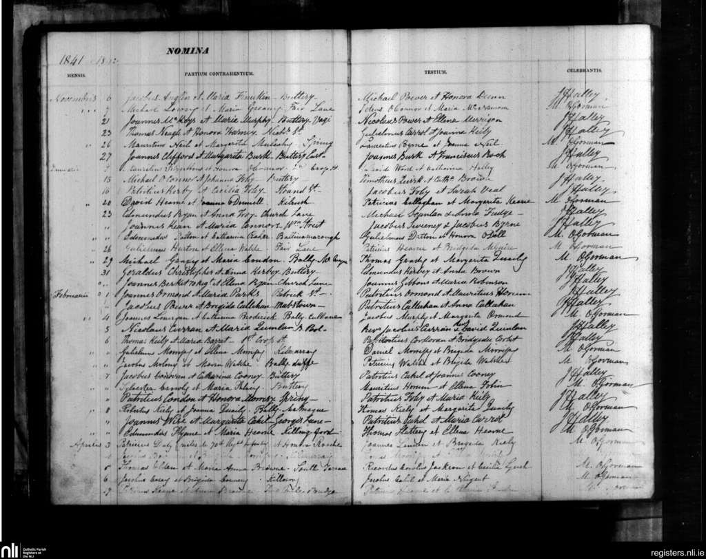 Dungarvan; County of Waterford; Diocese of Waterford and Lismore. Marriages, Nov. 1841 to Apr. 1842