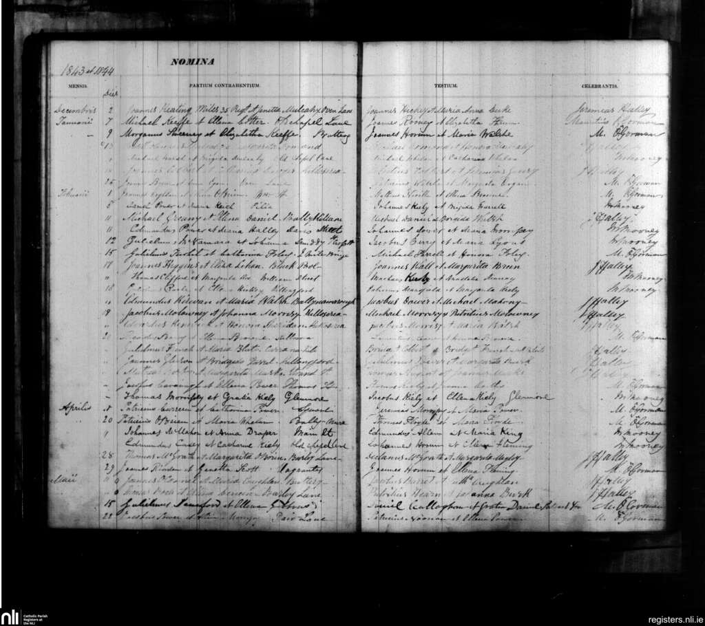 Dungarvan; County of Waterford; Diocese of Waterford and Lismore. Marriages, Dec. 1843 to May 1844