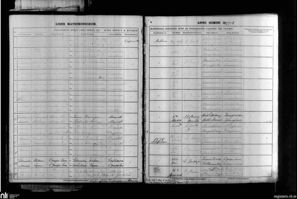Dungarvan; County of Waterford; Diocese of Waterford and Lismore. Marriages, Sep. 1877 to Jan. 1878