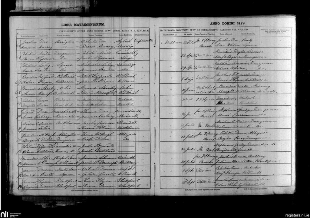 Dungarvan; County of Waterford; Diocese of Waterford and Lismore. Marriages, Feb. 1880 to Sep. 1880