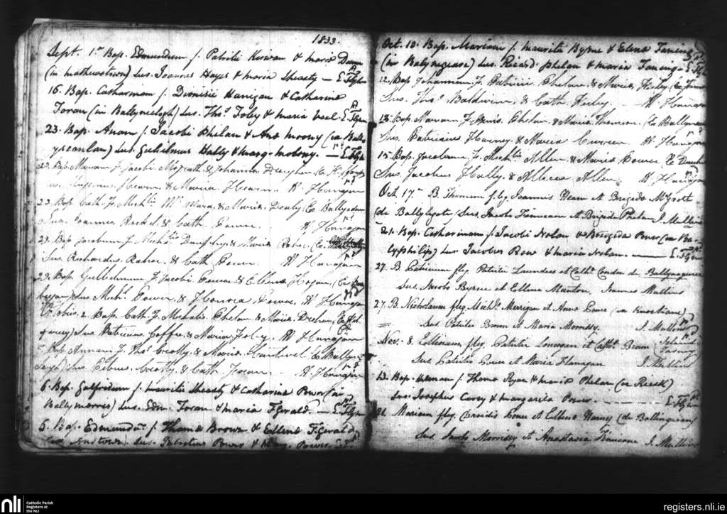 Dunhill and Fenor; County of Waterford; Diocese of Waterford and Lismore. Baptisms, Sep. 1833 to Nov. 1833