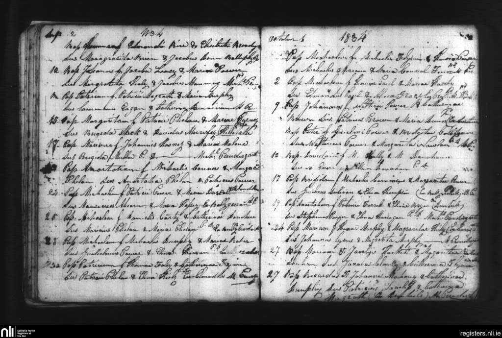 Dunhill and Fenor; County of Waterford; Diocese of Waterford and Lismore. Baptisms, Sep. 1834 to Oct. 1834