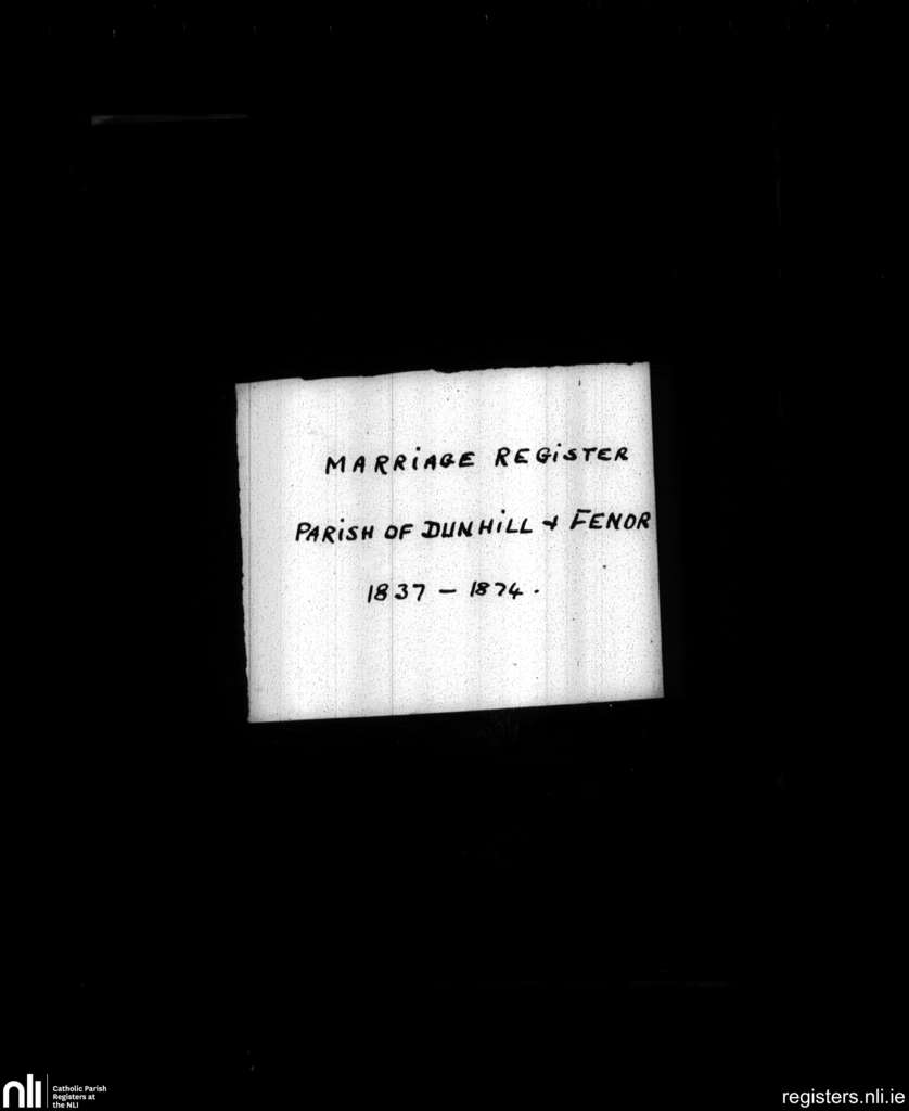 Dunhill and Fenor; County of Waterford; Diocese of Waterford and Lismore. Marriages