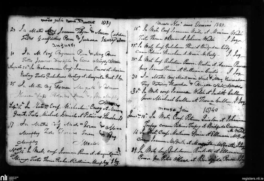 Dunhill and Fenor; County of Waterford; Diocese of Waterford and Lismore. Marriages, July 1839 to Jan. 1840