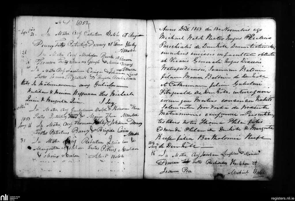 Dunhill and Fenor; County of Waterford; Diocese of Waterford and Lismore. Marriages, Sep. 1852 to Aug. 1854