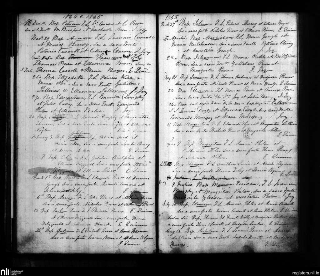 Dunhill and Fenor; County of Waterford; Diocese of Waterford and Lismore. Baptisms, Dec. 1864 to Aug. 1865