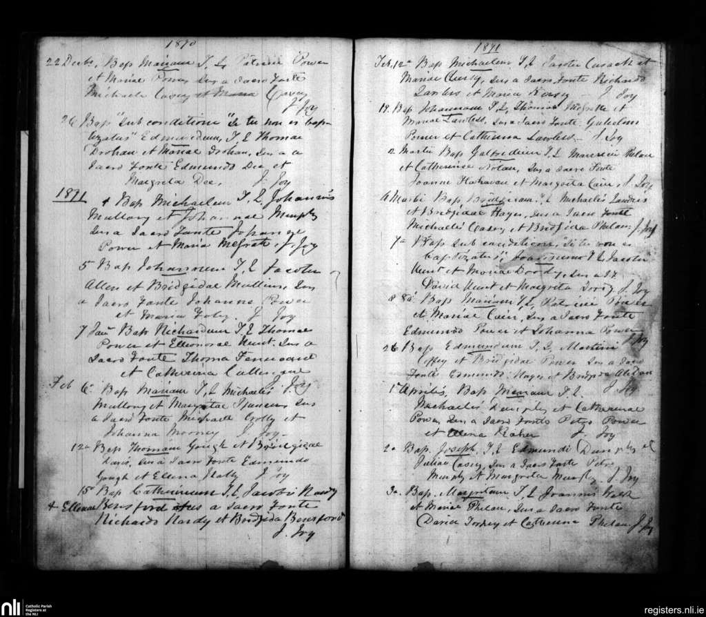 Dunhill and Fenor; County of Waterford; Diocese of Waterford and Lismore. Baptisms, Dec. 1870 to Apr. 1871