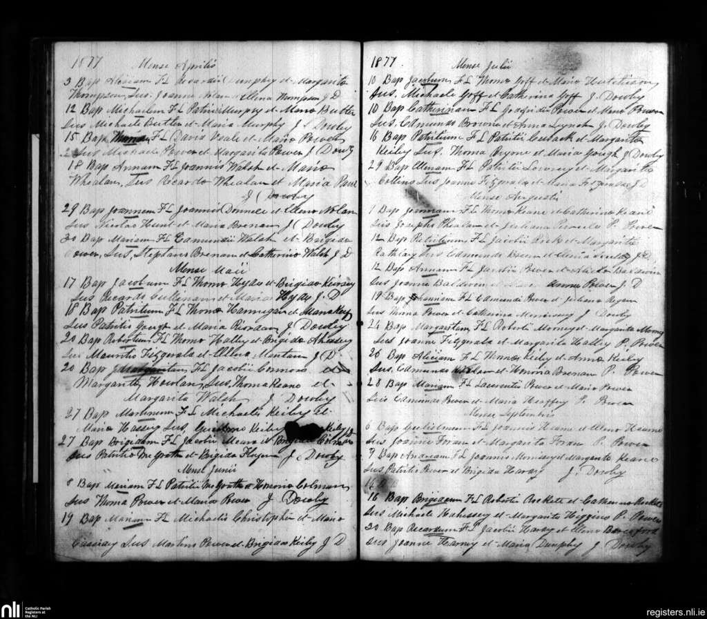 Dunhill and Fenor; County of Waterford; Diocese of Waterford and Lismore. Baptisms, Apr. 1877 to Sep. 1877